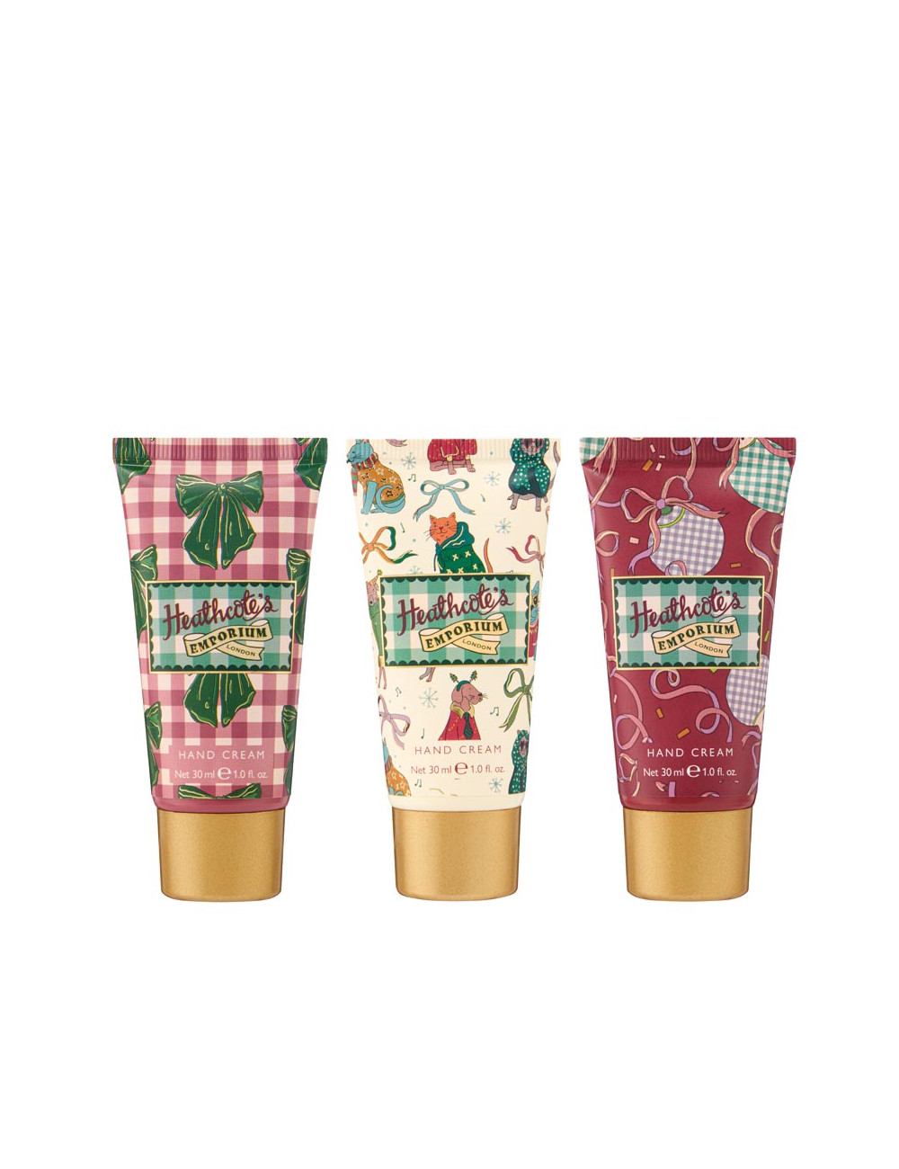 Handcremes mit dem charakteristischen festlichen Duft aus ätherischen Ölen von beruhigendem Eukalyptus, Lavendel und Patchouli mit Noten von frischen grünen Blättern, Maiglöckchen und warmem Sandelholz.